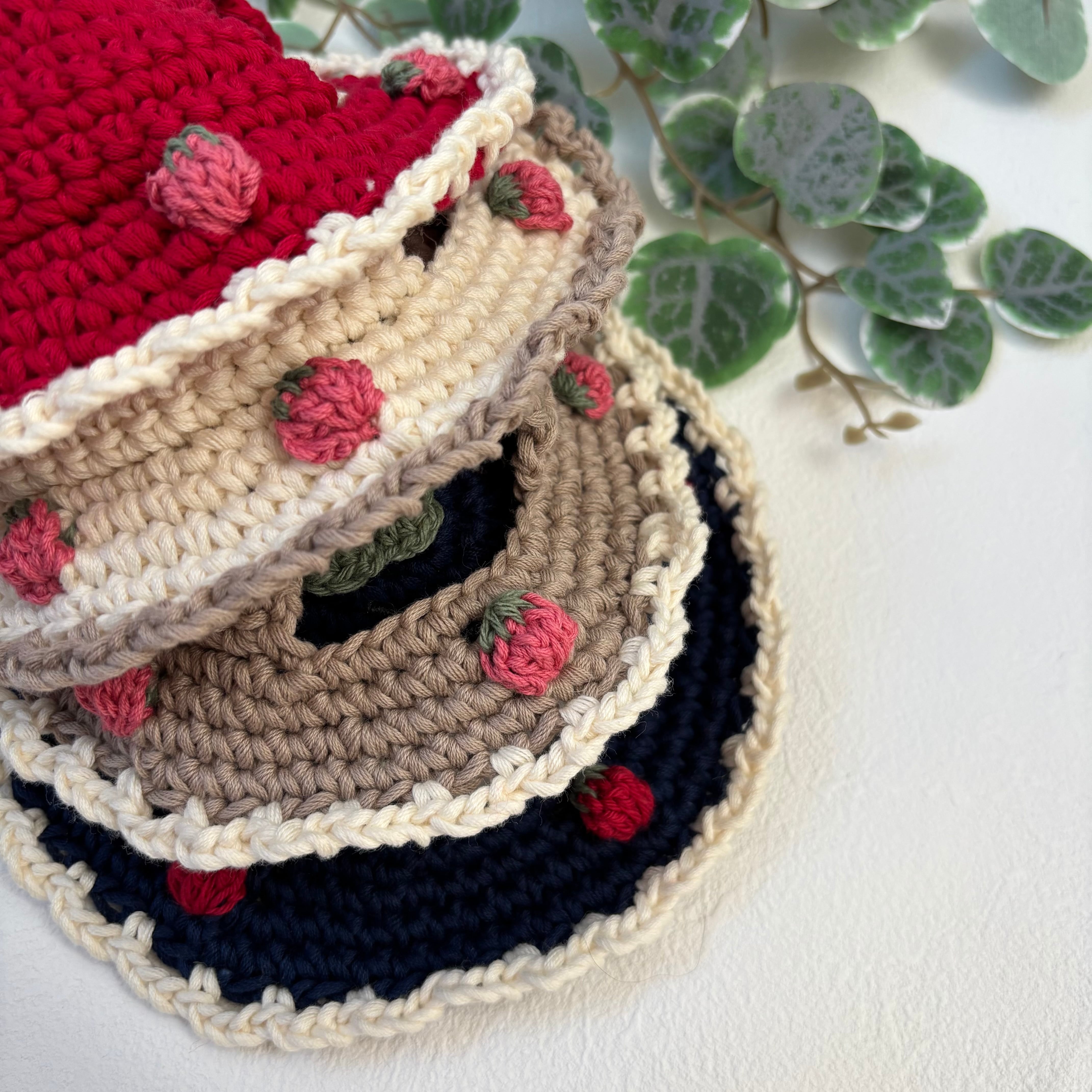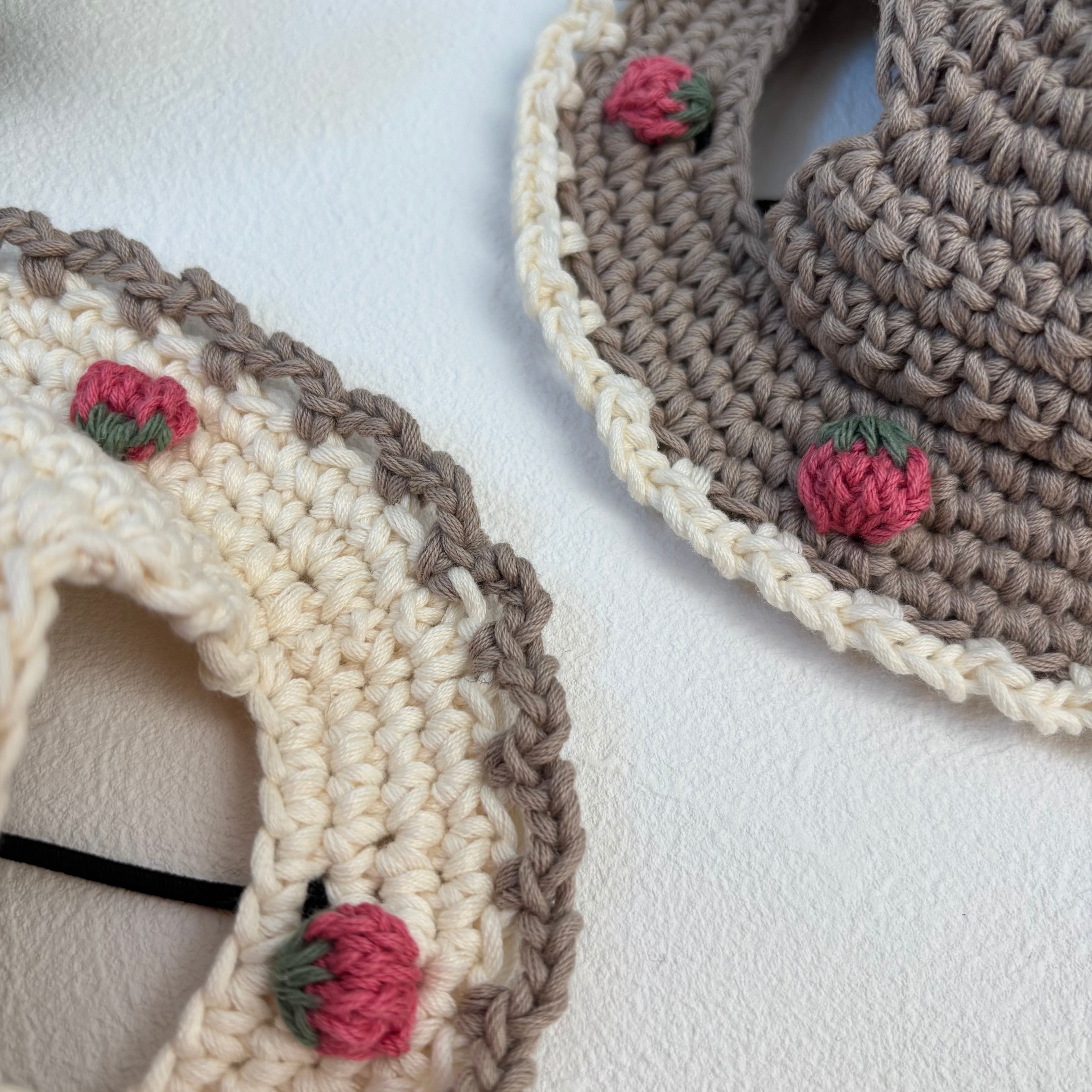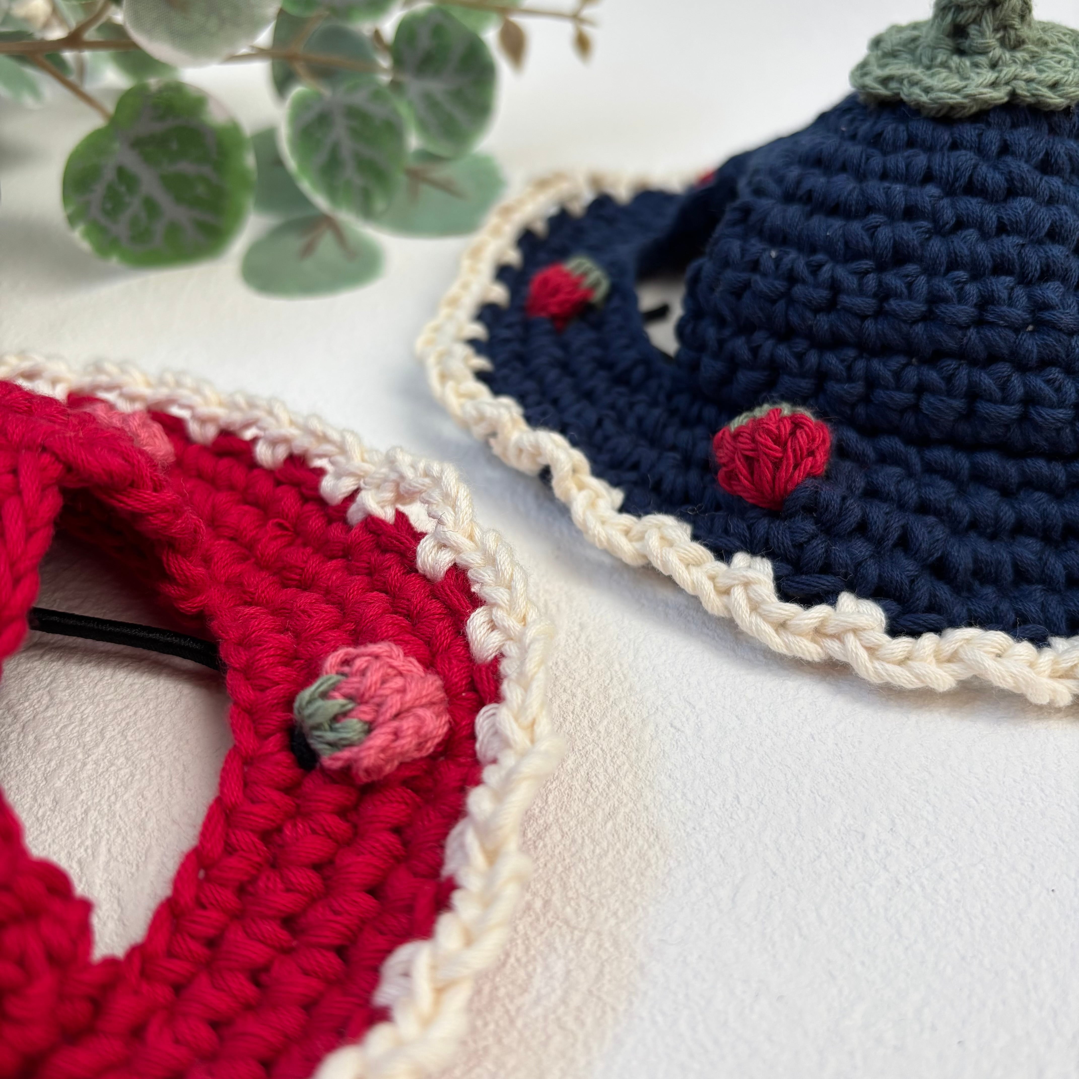 こちらはデザインと糸を変えた新しいいちご帽子になります。