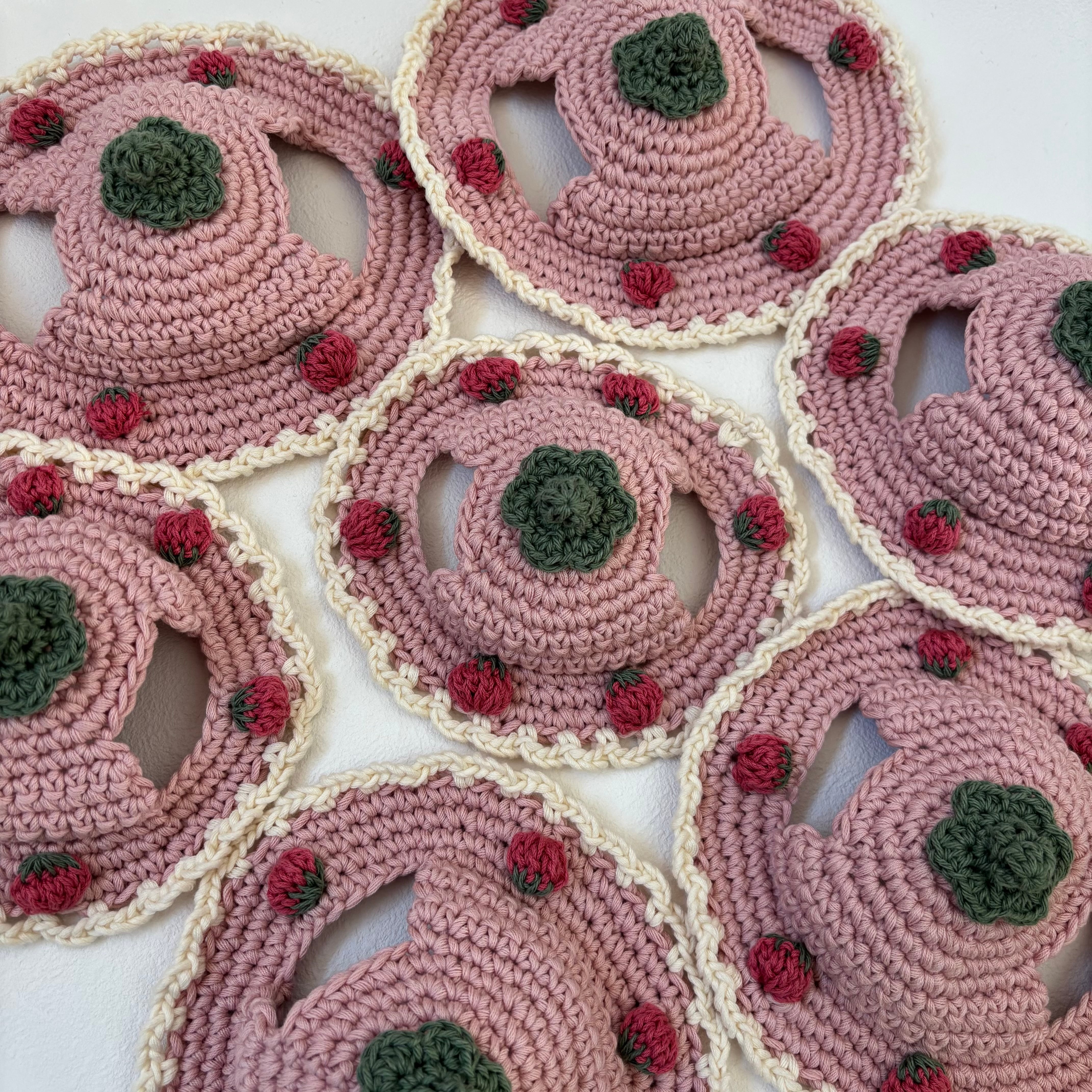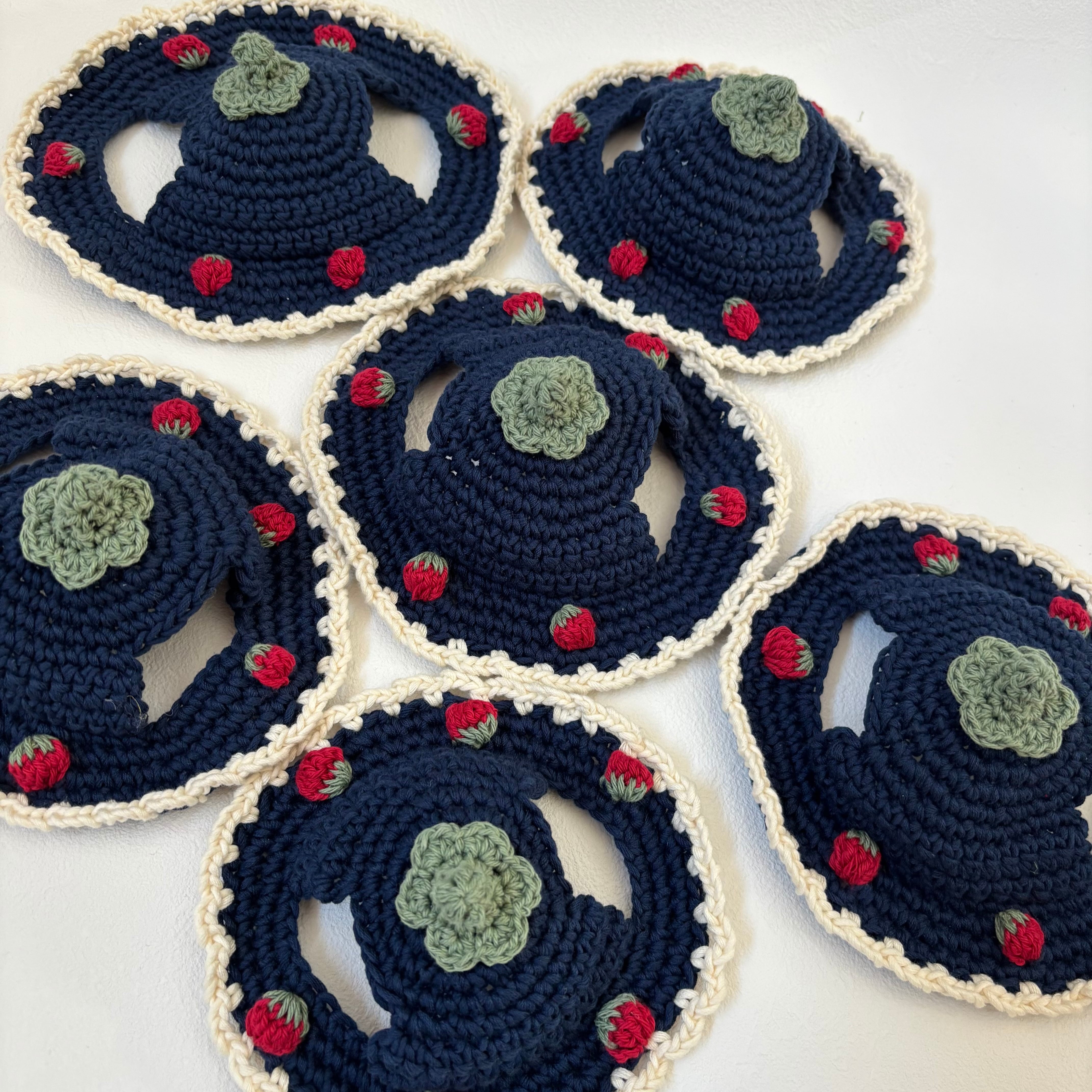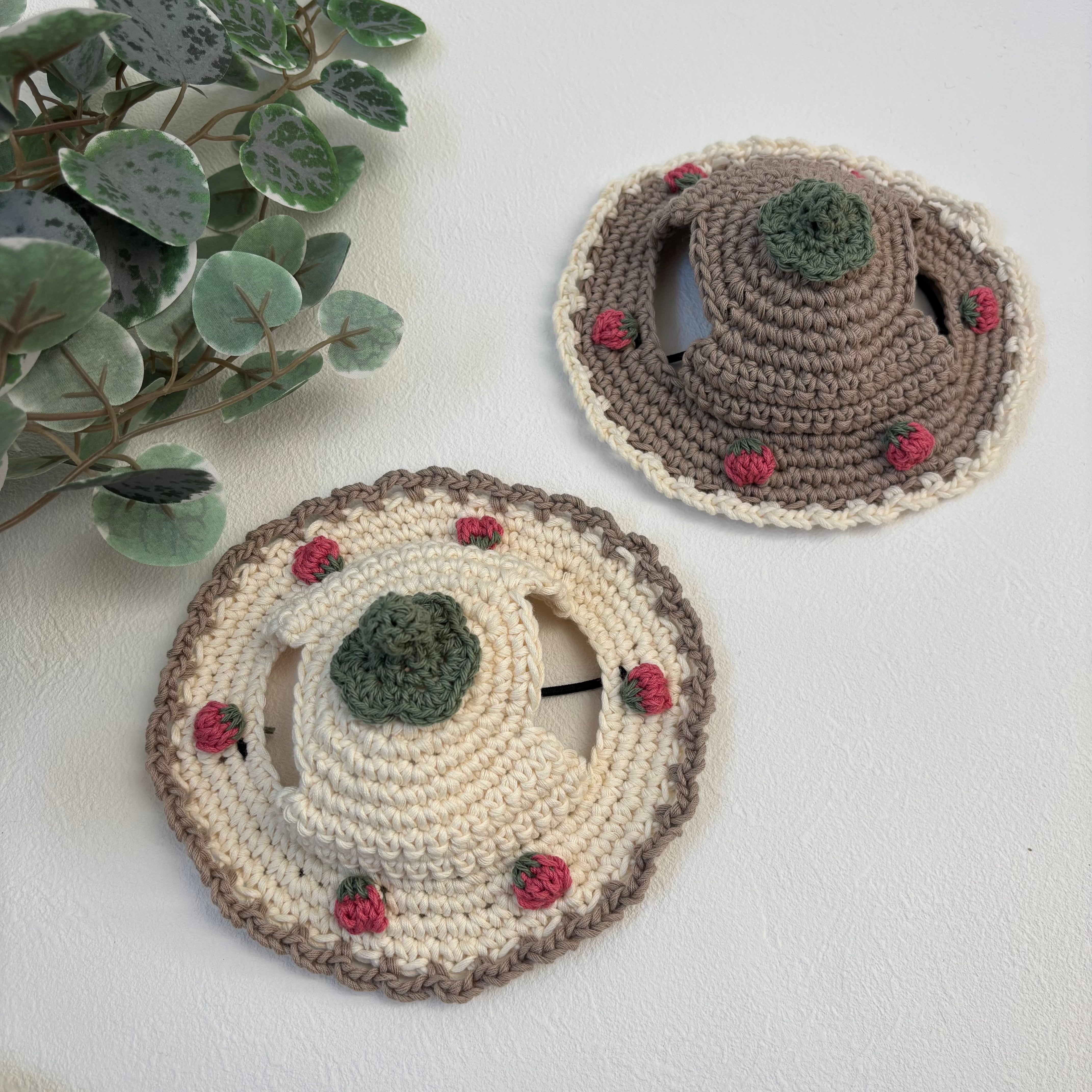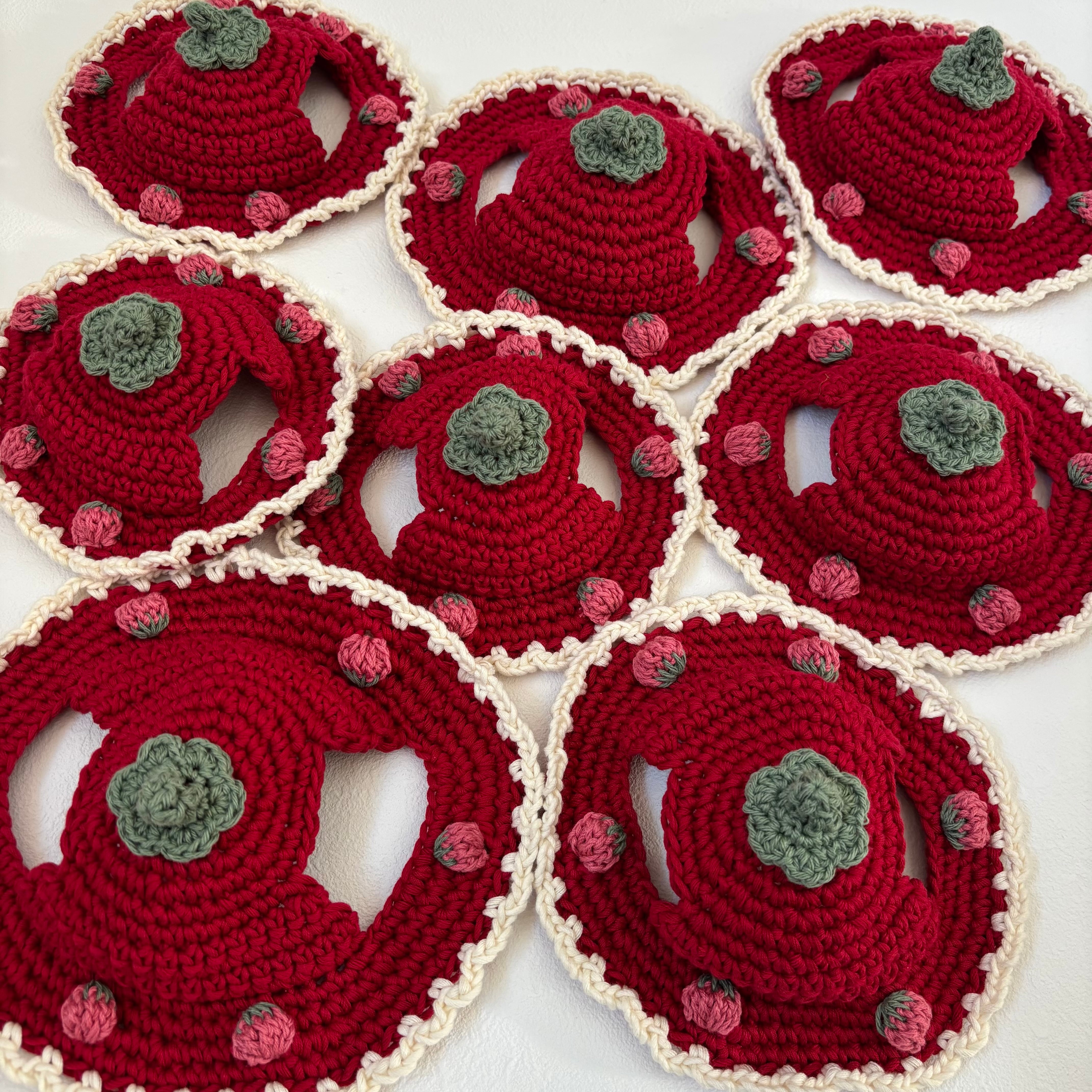 こちらはデザインと糸を変えた新しいいちご帽子になります。