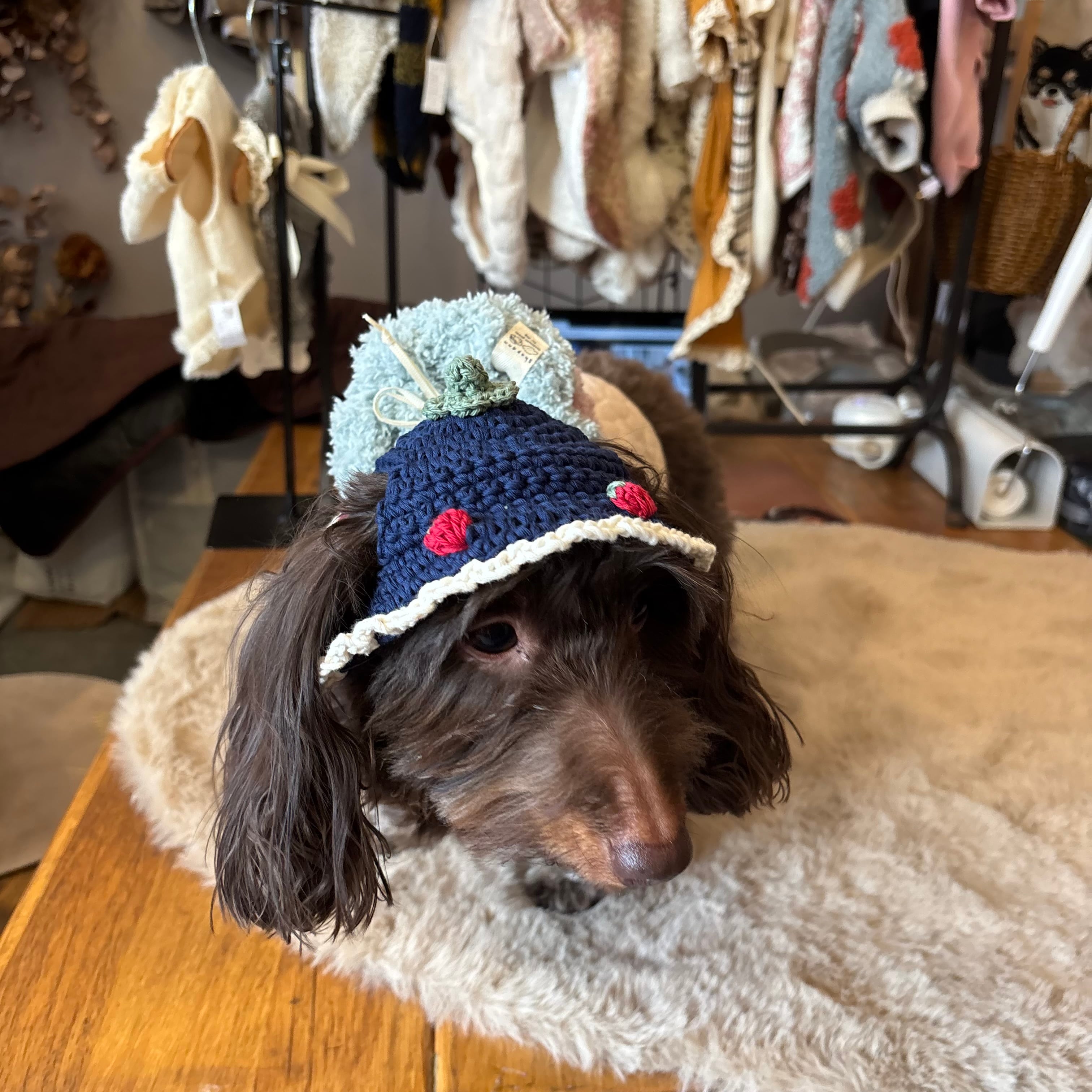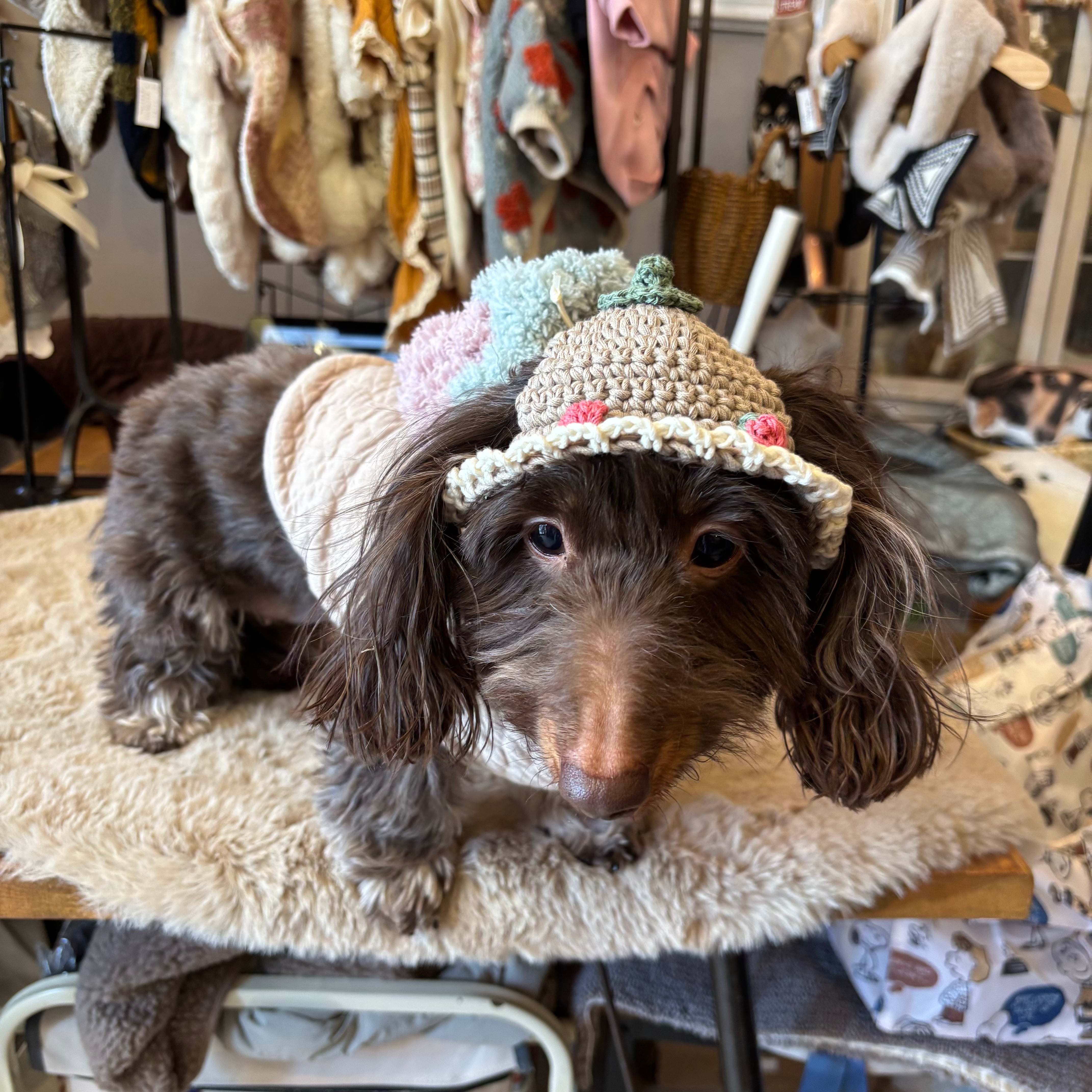 かわいらしい特徴的な帽子で、「それどこの?」と聞かれること間違いなし。